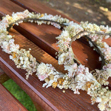 Con un estilo más hippy y bohemio, es una corona ideal para fiestas más informales y desenfadadas.